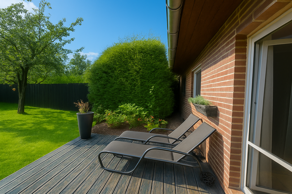 Genießen Sie das gute Klima und die schönen Seiten des Nordens bei einem guten Glas Wein auf der Terrasse mit Blick ins Grüne.