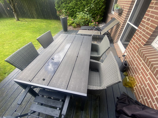 Genießen Sie das gute Klima und die schönen Seiten des Nordens bei einem guten Glas Wein auf der Terrasse mit Blick ins Grüne.